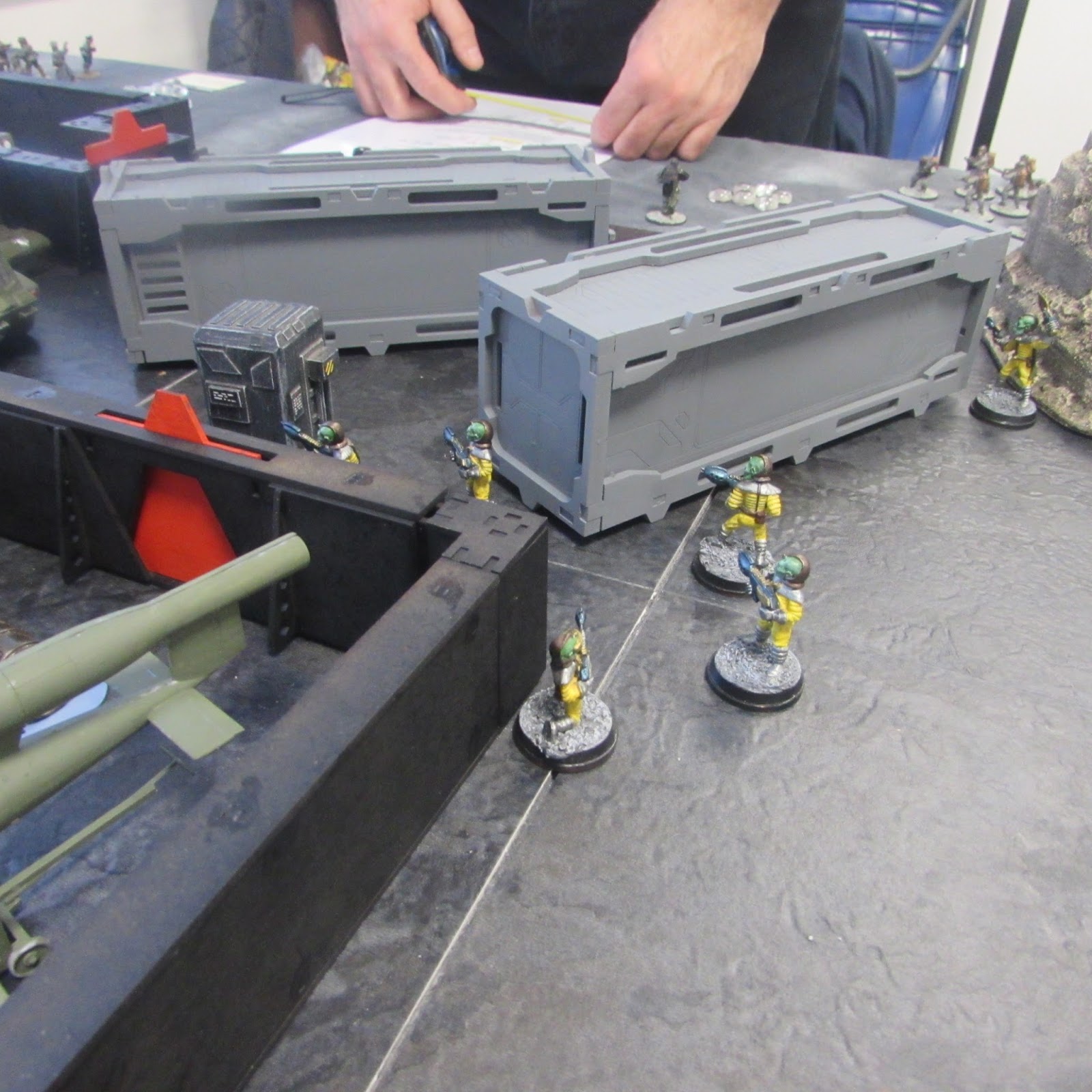 The game synopsis was that British radar had discovered the existence of a structure on the moon and with a little investigation had found out that it was the last remnants of Nazism. I had put together a defending force and also an attacking force consisting of British paras decked out in an early camouflaged space suit.To complement my figures and offering participants an alternative I delve into my collection and Colin Jack's enormous figure collection to come up with some other forces.